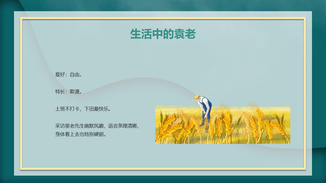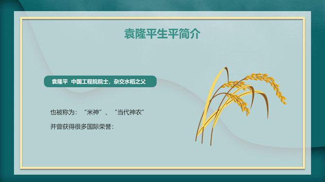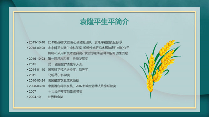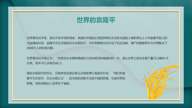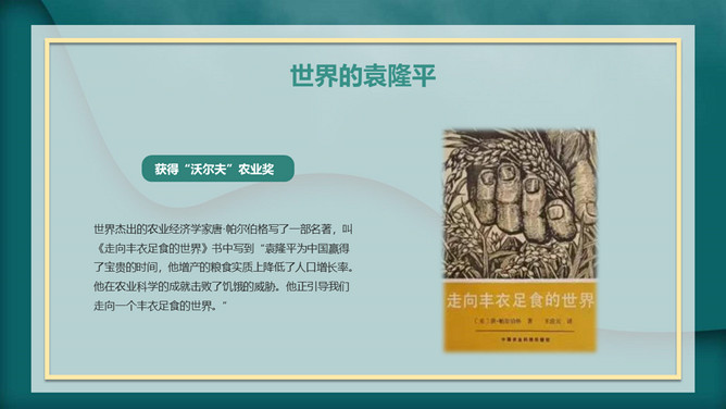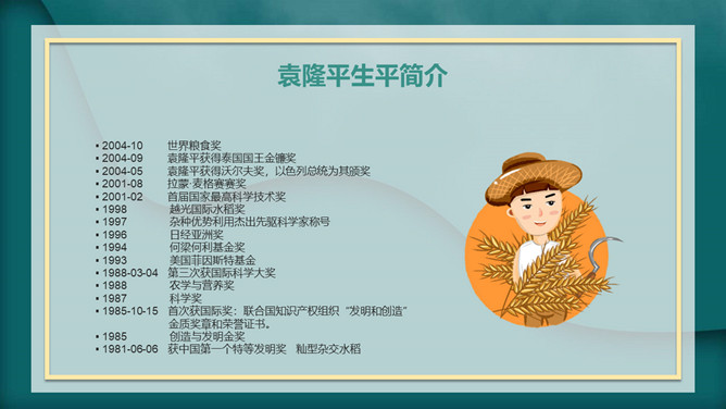 我心目中的英雄袁隆平PPT模板abby1年前发布关注私信0241417我心目中的英雄袁隆平PPT模板此内容为付费资源,请付费后查看R1黄金会员免费钻石会员免费立即购买您当前未登录!建议登陆后购买,可保存购买订单付费资源已售 19 我心目中的英雄袁隆平PPT模板。内容包括袁隆平生平简介、中国的袁隆平、世界的袁隆平、生活中的袁老。 © 版权声明文章版权归作者所有,未经允许请勿转载。THE ENDPPT模版 喜欢就支持一下吧点赞17 分享QQ空间微博QQ好友海报分享复制链接收藏