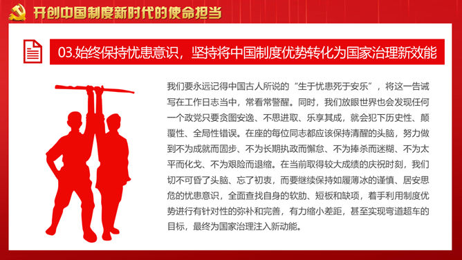 战胜重大风险与挑战PPT模板abby1年前发布关注私信094624战胜重大风险与挑战PPT模板此内容为付费资源,请付费后查看R1黄金会员免费钻石会员免费立即购买您当前未登录!建议登陆后购买,可保存购买订单付费资源已售 11 战胜重大风险与挑战PPT模板。回顾党领导下的中国制度形成历史。从党创建中国制度的历史回忆得到的启发。开创中国制度新时代的使命担当。 © 版权声明文章版权归作者所有,未经允许请勿转载。THE ENDPPT模版 喜欢就支持一下吧点赞24 分享QQ空间微博QQ好友海报分享复制链接收藏
