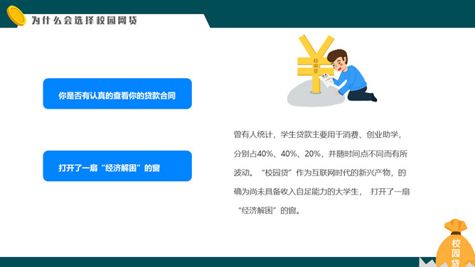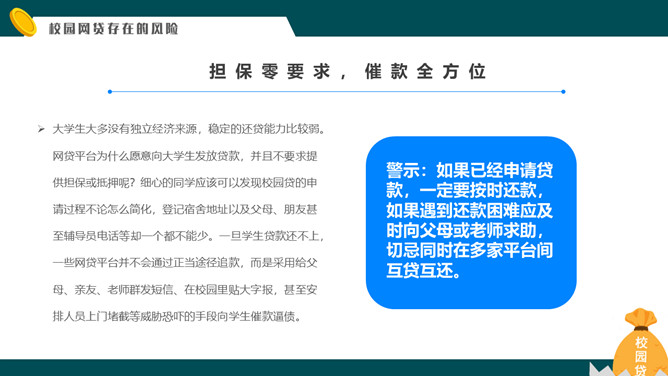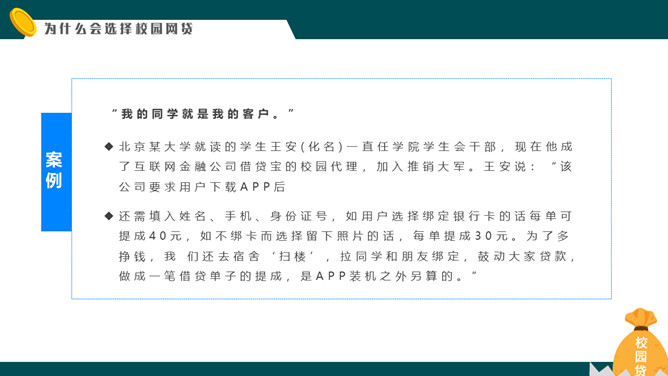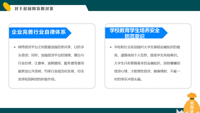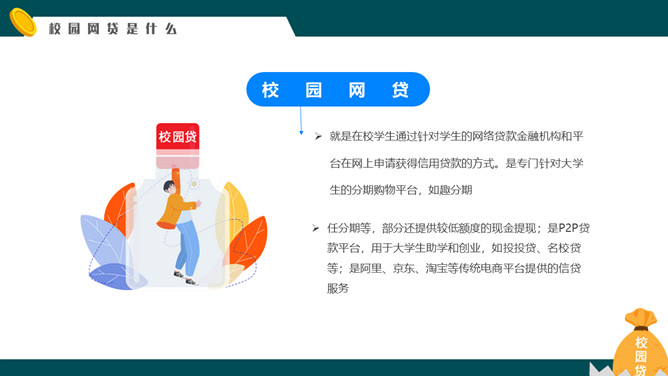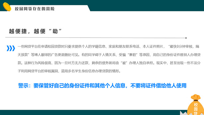 拒绝校园网贷PPT课件模板abby1年前发布关注私信011825拒绝校园网贷PPT课件模板此内容为付费资源,请付费后查看R1黄金会员免费钻石会员免费立即购买您当前未登录!建议登陆后购买,可保存购买订单付费资源已售 4 拒绝校园网贷PPT课件模板。内容包括校园网贷是什么、为什么会选择校园网贷、校园网贷存在的风险、对于校园网贷的对策。 © 版权声明文章版权归作者所有,未经允许请勿转载。THE ENDPPT模版 喜欢就支持一下吧点赞5 分享QQ空间微博QQ好友海报分享复制链接收藏
