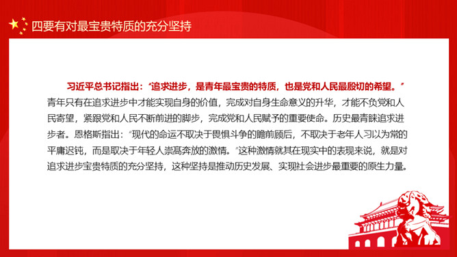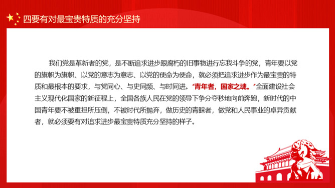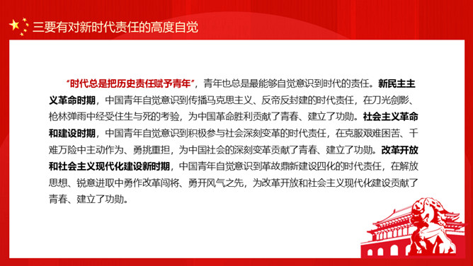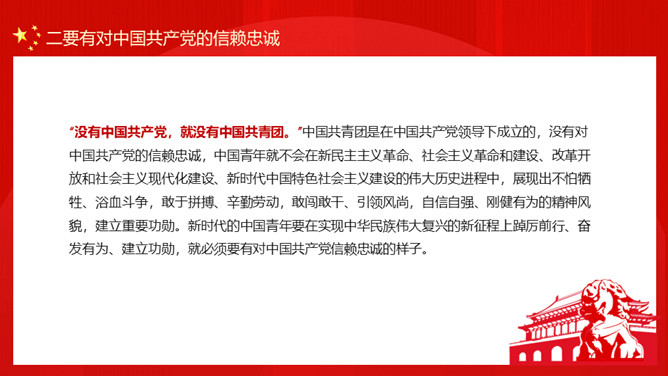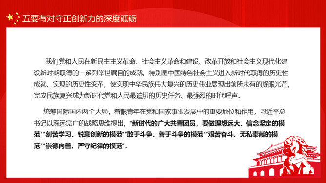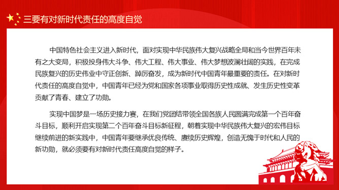 新时代中国青年要有的样子PPT模板abby1年前发布关注私信0176314新时代中国青年要有的样子PPT模板此内容为付费资源,请付费后查看R1黄金会员免费钻石会员免费立即购买您当前未登录!建议登陆后购买,可保存购买订单付费资源已售 16 新时代中国青年要有的样子PPT模板。内容包括要有对马克思主义的坚定信仰、要有对中国共产党的信赖忠诚、要有对新时代责任的高度自觉、要有对最宝贵特质的充分坚持、要有对守正创新力的深度砥砺。 © 版权声明文章版权归作者所有,未经允许请勿转载。THE ENDPPT模版 喜欢就支持一下吧点赞14 分享QQ空间微博QQ好友海报分享复制链接收藏