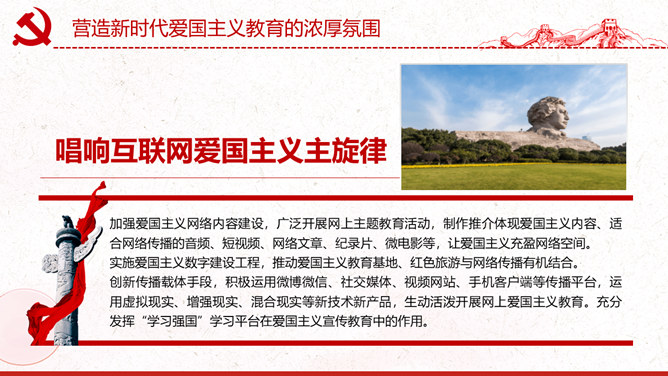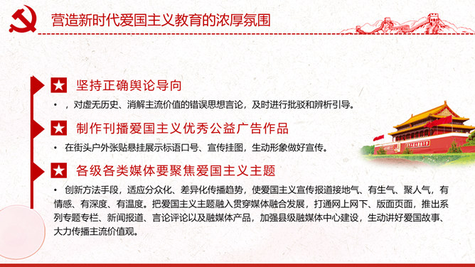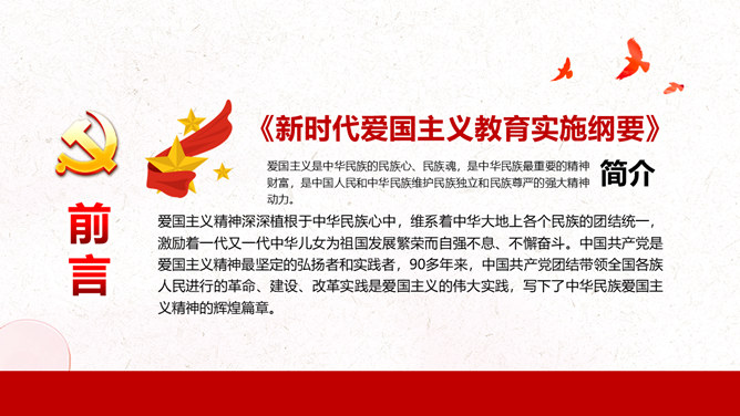 新时代爱国主义教育实施纲要PPT模板abby1年前发布关注私信022608新时代爱国主义教育实施纲要PPT模板此内容为付费资源,请付费后查看R1黄金会员免费钻石会员免费立即购买您当前未登录!建议登陆后购买,可保存购买订单付费资源已售 16 新时代爱国主义教育实施纲要PPT模板。包括总体要求基本内容、丰富新时代爱国主义教育的实践载体、营造新时代爱国主义教育的浓厚氛围、加强对新时代爱国主义教育的组织领导。 © 版权声明文章版权归作者所有,未经允许请勿转载。THE ENDPPT模版 喜欢就支持一下吧点赞8 分享QQ空间微博QQ好友海报分享复制链接收藏