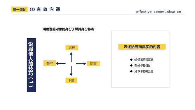 有效沟通有效执行力PPT课件模板abby1年前发布关注私信013788有效沟通有效执行力PPT课件模板此内容为付费资源,请付费后查看R1黄金会员免费钻石会员免费立即购买您当前未登录!建议登陆后购买,可保存购买订单付费资源已售 9 有效沟通有效执行力PPT课件模板。每个人都有自己理想的领导模式,当你与他人——主要是与职员进行交流时,领导者沟通技巧对交流产生很深影响。 © 版权声明文章版权归作者所有,未经允许请勿转载。THE ENDPPT模版 喜欢就支持一下吧点赞8 分享QQ空间微博QQ好友海报分享复制链接收藏