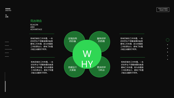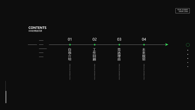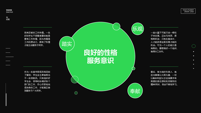 极简学生会竞选自我介绍PPT模板abby1年前发布关注私信0141319极简学生会竞选自我介绍PPT模板此内容为付费资源,请付费后查看R1黄金会员免费钻石会员免费立即购买您当前未登录!建议登陆后购买,可保存购买订单付费资源已售 10 学生会竞选自我介绍PPT模板。一套大学生学生会干部竞选幻灯片模板,极简设计,时尚黑绿配色,动态播放效果。 © 版权声明文章版权归作者所有,未经允许请勿转载。THE ENDPPT模版 喜欢就支持一下吧点赞19 分享QQ空间微博QQ好友海报分享复制链接收藏