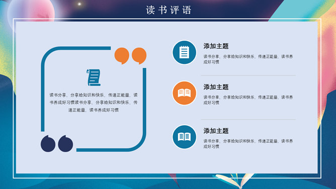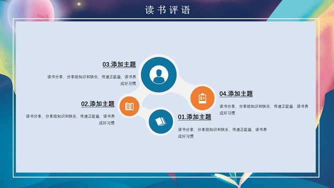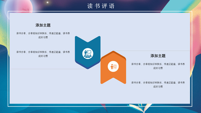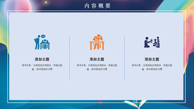 梦幻书籍读书分享会PPT模板abby1年前发布关注私信036410梦幻书籍读书分享会PPT模板此内容为付费资源,请付费后查看R1黄金会员免费钻石会员免费立即购买您当前未登录!建议登陆后购买,可保存购买订单付费资源已售 11 梦幻书籍读书分享会PPT模板。一套读书笔记读书分享幻灯片模板,梦幻飞翔书籍书本背景,动态播放效果。 © 版权声明文章版权归作者所有,未经允许请勿转载。THE ENDPPT模版 喜欢就支持一下吧点赞10 分享QQ空间微博QQ好友海报分享复制链接收藏