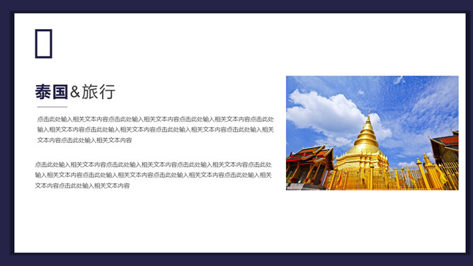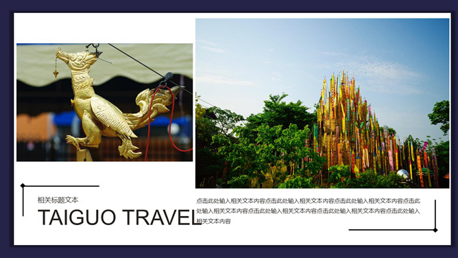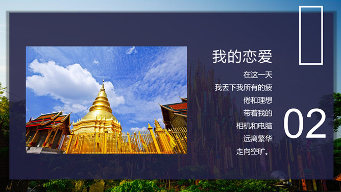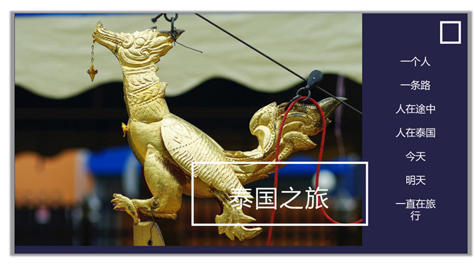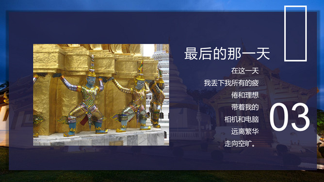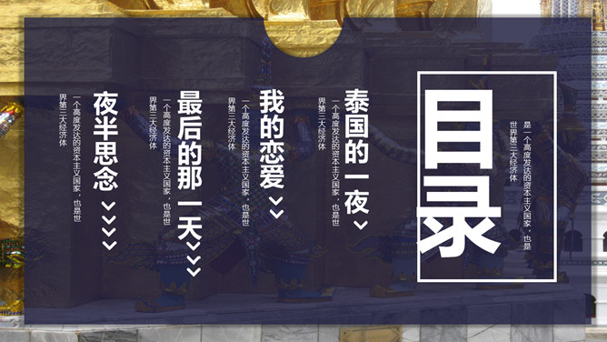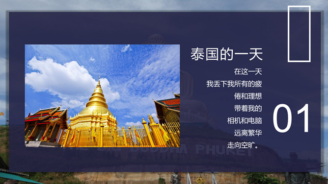 泰国旅行日记旅行相册PPT模板abby1年前发布关注私信0188611泰国旅行日记旅行相册PPT模板此内容为付费资源,请付费后查看R1黄金会员免费钻石会员免费立即购买您当前未登录!建议登陆后购买,可保存购买订单付费资源已售 6 泰国旅行日记旅行相册PPT模板。一套泰国旅游日记幻灯片模板,多种图文排版方式,稍作修改可做其他旅行相册。 © 版权声明文章版权归作者所有,未经允许请勿转载。THE ENDPPT模版 喜欢就支持一下吧点赞11 分享QQ空间微博QQ好友海报分享复制链接收藏