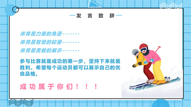 滑雪滑冰冬季体育运动会PPT模板abby1年前发布关注私信0122112滑雪滑冰冬季体育运动会PPT模板此内容为付费资源,请付费后查看R1黄金会员免费钻石会员免费立即购买您当前未登录!建议登陆后购买,可保存购买订单付费资源已售 17 滑雪滑冰冬季体育运动会PPT模板。一套冬季体育运动主题幻灯模板,适合滑雪滑冰知识介绍或运动活动策划等用途。 © 版权声明文章版权归作者所有,未经允许请勿转载。THE ENDPPT模版 喜欢就支持一下吧点赞12 分享QQ空间微博QQ好友海报分享复制链接收藏