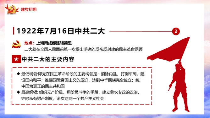 百年党史建党100周年PPT模板abby1年前发布关注私信019901百年党史建党100周年PPT模板此内容为付费资源,请付费后查看R1黄金会员免费钻石会员免费立即购买您当前未登录!建议登陆后购买,可保存购买订单付费资源已售 14 百年党史建党100周年PPT模板。一套庆祝建党一百周年模板,回顾百年党史,包括建党初期、第一次国内革命、第二次国内革命、全民抗日战争、国共和谈、解放战争时期、建国初期、文化大革命、过渡时期、改革开放几个部分。 © 版权声明文章版权归作者所有,未经允许请勿转载。THE ENDPPT模版 喜欢就支持一下吧点赞1 分享QQ空间微博QQ好友海报分享复制链接收藏