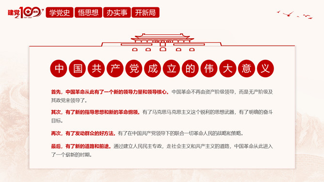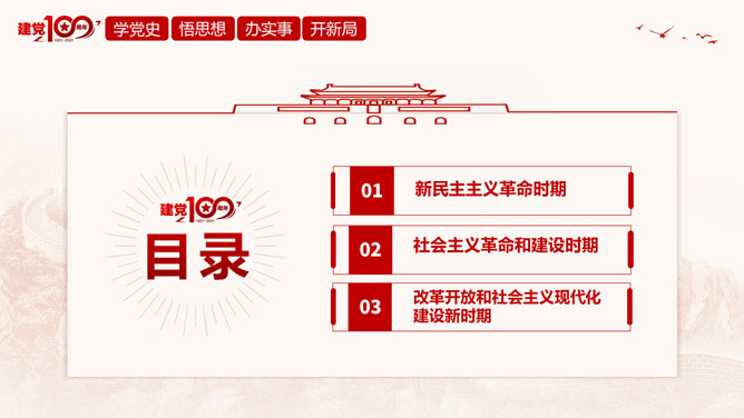 百年奋斗路启航新征程PPT模板abby1年前发布关注私信0120420百年奋斗路启航新征程PPT模板此内容为付费资源,请付费后查看R1黄金会员免费钻石会员免费立即购买您当前未登录!建议登陆后购买,可保存购买订单付费资源已售 6 百年奋斗路启航新征程PPT模板。内容包括新民主主义革命时期、社会主义革命和建设时期、改革开放和社会主义现代化建设新时期。 © 版权声明文章版权归作者所有,未经允许请勿转载。THE ENDPPT模版 喜欢就支持一下吧点赞20 分享QQ空间微博QQ好友海报分享复制链接收藏
