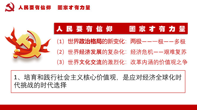社会主义核心价值观教育PPT模板abby1年前发布关注私信016823社会主义核心价值观教育PPT模板此内容为付费资源,请付费后查看R1黄金会员免费钻石会员免费立即购买您当前未登录!建议登陆后购买,可保存购买订单付费资源已售 18 社会主义核心价值观教育PPT模板。人民要有信仰,国家才有力量。凝聚中国精神,传递中国声音。时代召唤理论,理论助推实践。凝聚中国精神,传递中国声音。观念内化于心,思想融入灵魂。精神外化于行,梦想落地生根。 © 版权声明文章版权归作者所有,未经允许请勿转载。THE ENDPPT模版 喜欢就支持一下吧点赞3 分享QQ空间微博QQ好友海报分享复制链接收藏