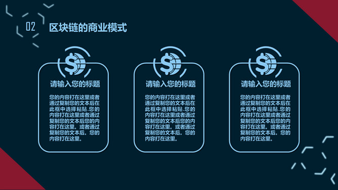 科技感区块链技术介绍PPT模板abby1年前发布关注私信0235515科技感区块链技术介绍PPT模板此内容为付费资源,请付费后查看R1黄金会员免费钻石会员免费立即购买您当前未登录!建议登陆后购买,可保存购买订单付费资源已售 2 科技感区块链技术介绍PPT模板。一套区块链主题幻灯片模板,时尚蓝红配色,科技风设计,介绍了区块链的基本内容、商业模式、近期发展和前景展望。 © 版权声明文章版权归作者所有,未经允许请勿转载。THE ENDPPT模版 喜欢就支持一下吧点赞15 分享QQ空间微博QQ好友海报分享复制链接收藏