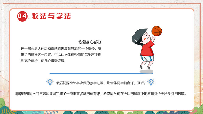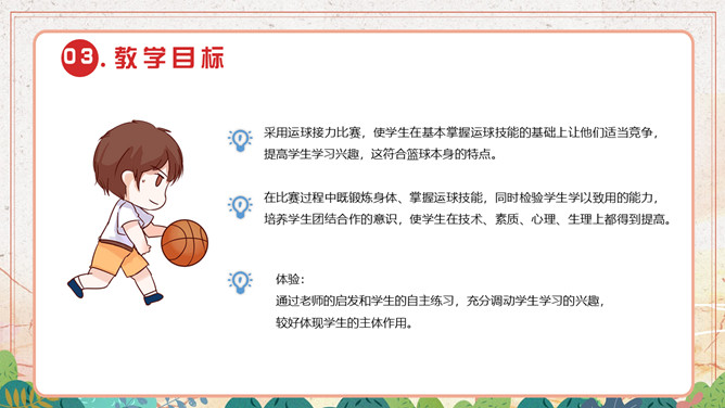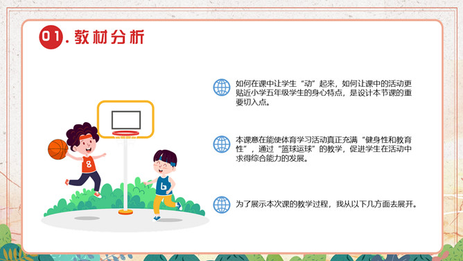 篮球体育说课课件PPT模板abby1年前发布关注私信073813篮球体育说课课件PPT模板此内容为付费资源,请付费后查看R1黄金会员免费钻石会员免费立即购买您当前未登录!建议登陆后购买,可保存购买订单付费资源已售 13 篮球体育说课课件PPT模板。本课用“篮球运球”作为教学内容,因为它具有游戏性、集体性、健身性等特点,为学生提供了促进学生身体、心理和社会适应和谐发展的生动而丰富的活动形式,是小学生最喜爱的活动内容。 © 版权声明文章版权归作者所有,未经允许请勿转载。THE ENDPPT模版 喜欢就支持一下吧点赞13 分享QQ空间微博QQ好友海报分享复制链接收藏