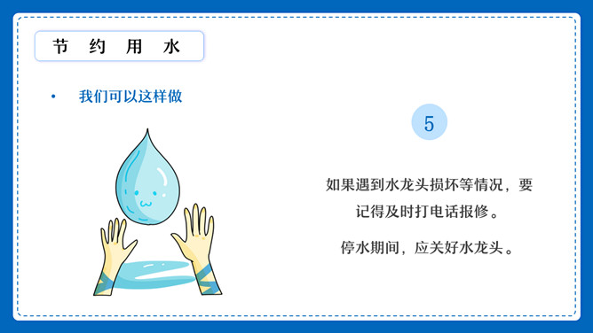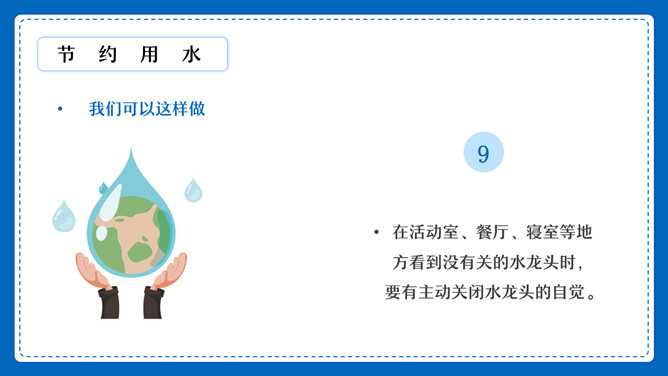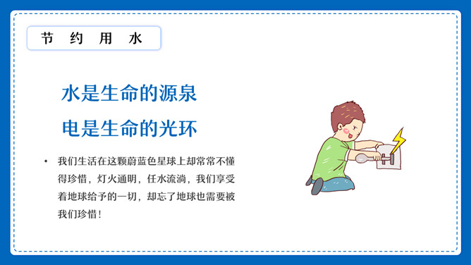 节约用水用电班会PPT模板abby1年前发布关注私信0181213节约用水用电班会PPT模板此内容为付费资源,请付费后查看R1黄金会员免费钻石会员免费立即购买您当前未登录!建议登陆后购买,可保存购买订单付费资源已售 3 节约用水用电班会PPT模板。水是生命的源,电是生命的光环。我们生活在这颗蔚蓝色星球上却常常不懂得珍惜,灯火通明,任水流淌,我们享受着地球给予的一切,却忘了地球也需要被我们珍惜! © 版权声明文章版权归作者所有,未经允许请勿转载。THE ENDPPT模版 喜欢就支持一下吧点赞13 分享QQ空间微博QQ好友海报分享复制链接收藏