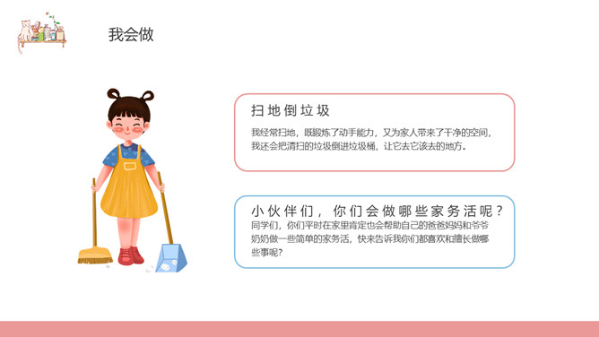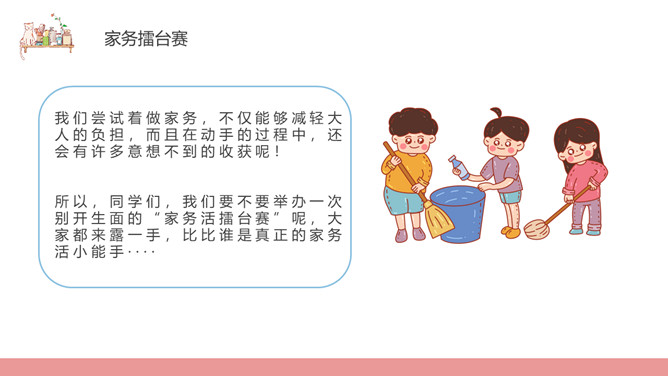 这些家务我来做班会PPT模板abby1年前发布关注私信024171这些家务我来做班会PPT模板此内容为付费资源,请付费后查看R1黄金会员免费钻石会员免费立即购买您当前未登录!建议登陆后购买,可保存购买订单付费资源已售 8 这些家务我来做班会PPT模板。内容包括家务擂台赛、愿做哪种人、不让做怎么办、与家务活“签约”、我问你答。 © 版权声明文章版权归作者所有,未经允许请勿转载。THE ENDPPT模版 喜欢就支持一下吧点赞1 分享QQ空间微博QQ好友海报分享复制链接收藏