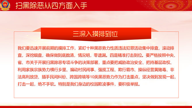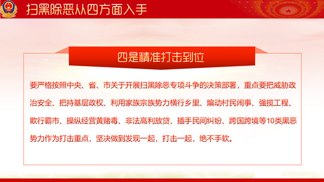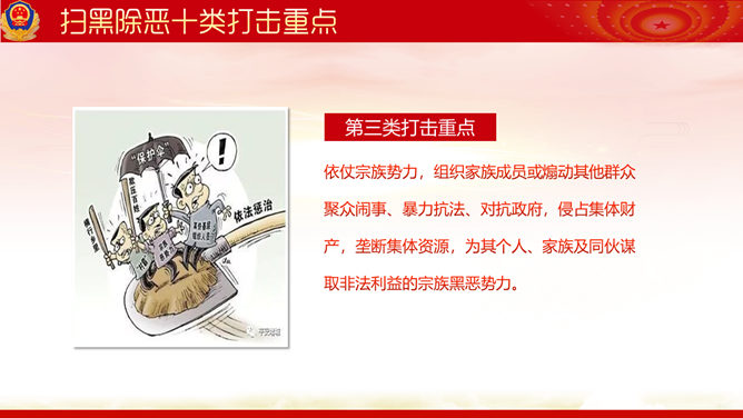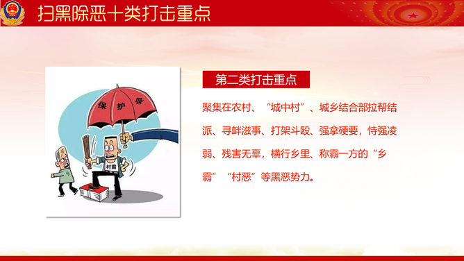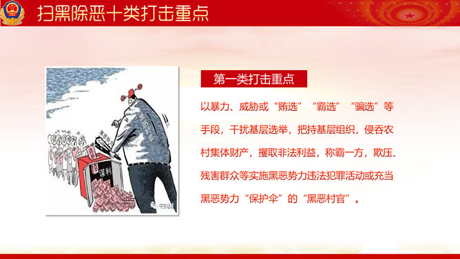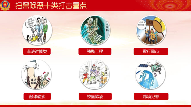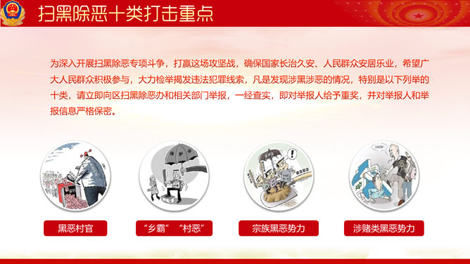 重拳出击扫黑除恶PPT模板abby1年前发布关注私信038114重拳出击扫黑除恶PPT模板此内容为付费资源,请付费后查看R1黄金会员免费钻石会员免费立即购买您当前未登录!建议登陆后购买,可保存购买订单付费资源已售 13 重拳出击扫黑除恶专项斗争PPT模板。包括扫黑除恶是什么、十类违法犯罪活动、全国开展专项活动等内容。 © 版权声明文章版权归作者所有,未经允许请勿转载。THE ENDPPT模版 喜欢就支持一下吧点赞14 分享QQ空间微博QQ好友海报分享复制链接收藏