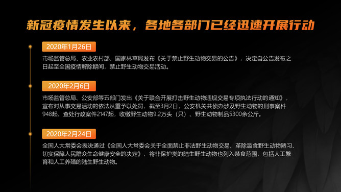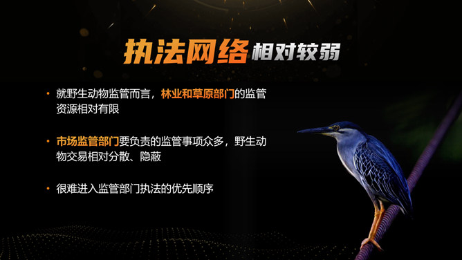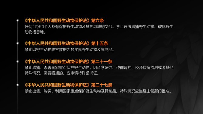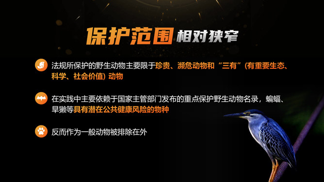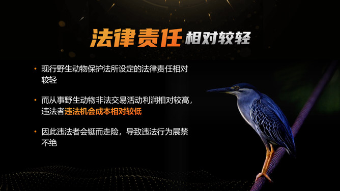 野生动物保护教育PPT模板abby1年前发布关注私信05045野生动物保护教育PPT模板此内容为付费资源,请付费后查看R1黄金会员免费钻石会员免费立即购买您当前未登录!建议登陆后购买,可保存购买订单付费资源已售 17 野生动物保护教育PPT模板。包括我国现有哪些野生动物保护法规、现行法规还存在什么不足之处、如何加大对野生动物的司法保护力度等内容。 © 版权声明文章版权归作者所有,未经允许请勿转载。THE ENDPPT模版 喜欢就支持一下吧点赞5 分享QQ空间微博QQ好友海报分享复制链接收藏