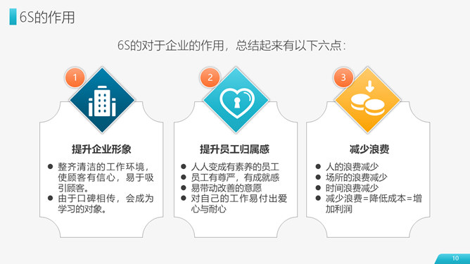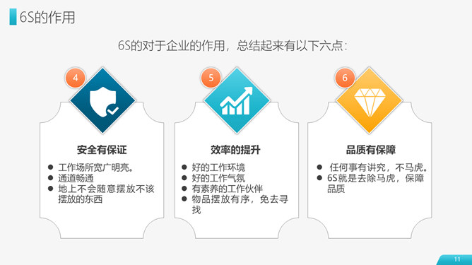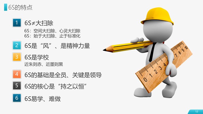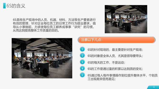 6S现场管理实施方法PPT模板abby1年前发布关注私信0104316S现场管理实施方法PPT模板此内容为付费资源,请付费后查看R1黄金会员免费钻石会员免费立即购买您当前未登录!建议登陆后购买,可保存购买订单付费资源已售 17 6S现场管理实施方法与技巧PPT模板。包括6S起源及其作用、6S管理基础知识、6S推进的方法步骤、推行6S管理的技巧四个部分。 © 版权声明文章版权归作者所有,未经允许请勿转载。THE ENDPPT模版 喜欢就支持一下吧点赞1 分享QQ空间微博QQ好友海报分享复制链接收藏